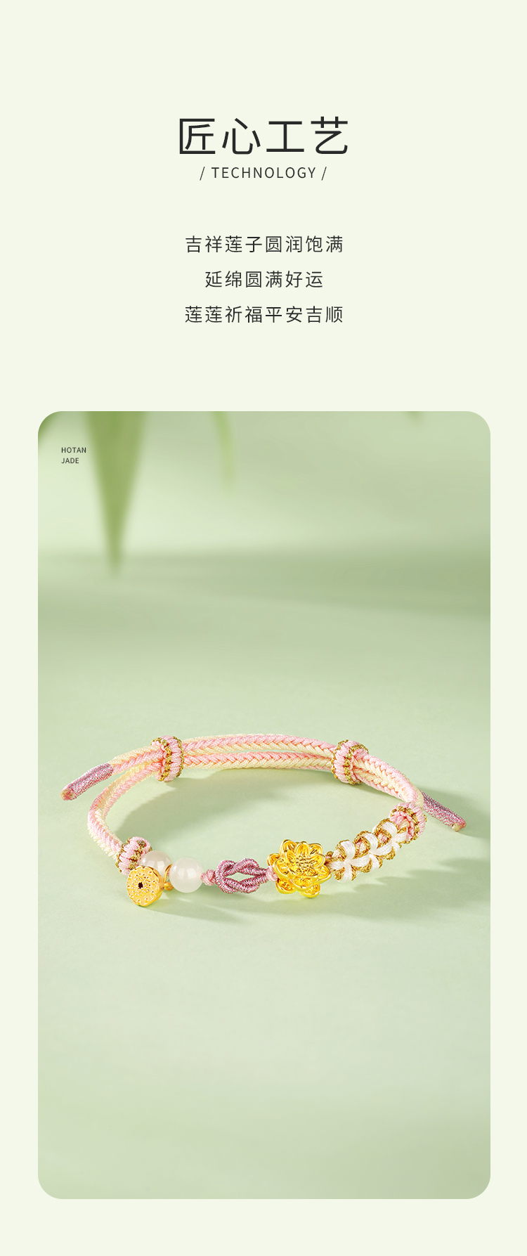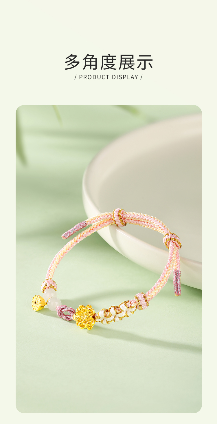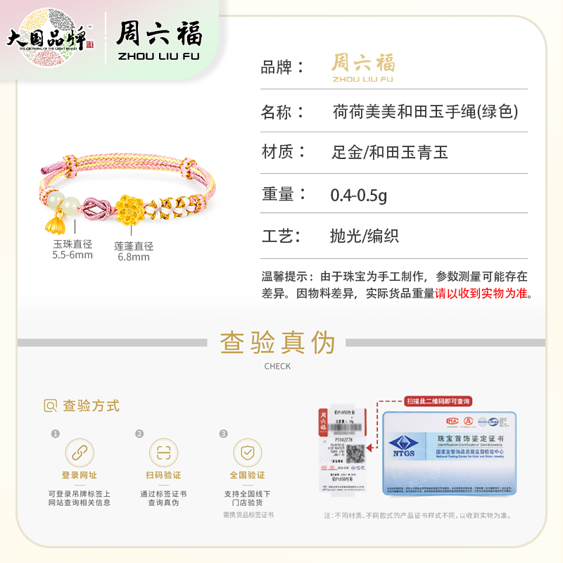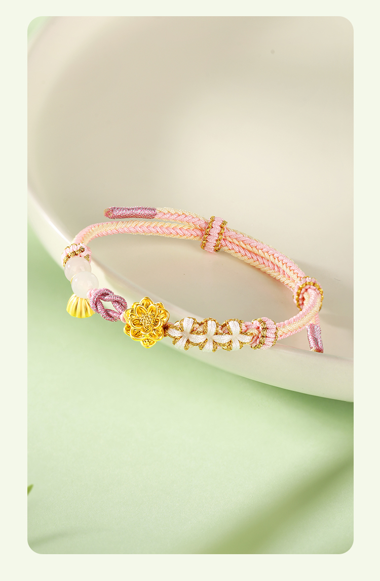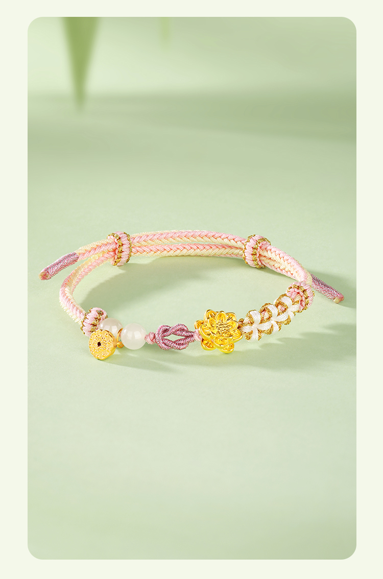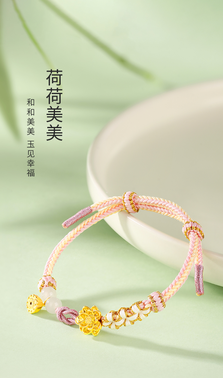 商品名称:周六福足金粉色荷荷美美和田玉手绳ZLFY172433
