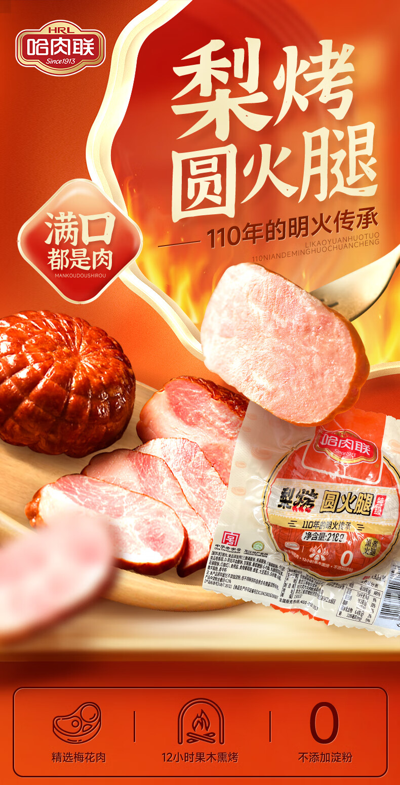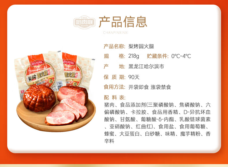 商品名称:哈肉联梨园烤火腿218g*2袋