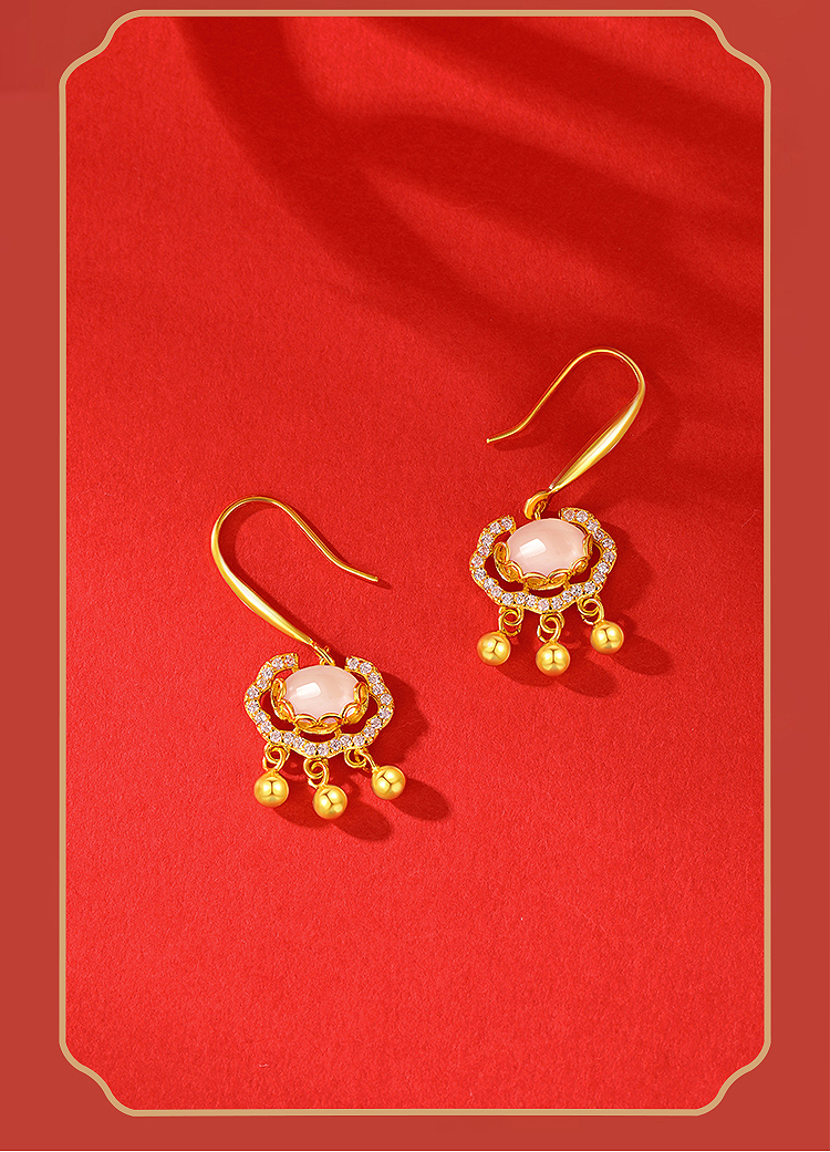 周六福S925银喜乐玉髓耳饰ZLFJ091909