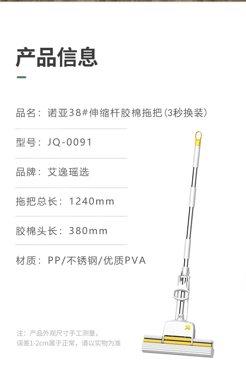 商品名称:艾逸瑶选3秒换装诺亚38#伸缩杆胶棉拖把JQ-0091