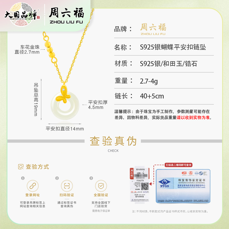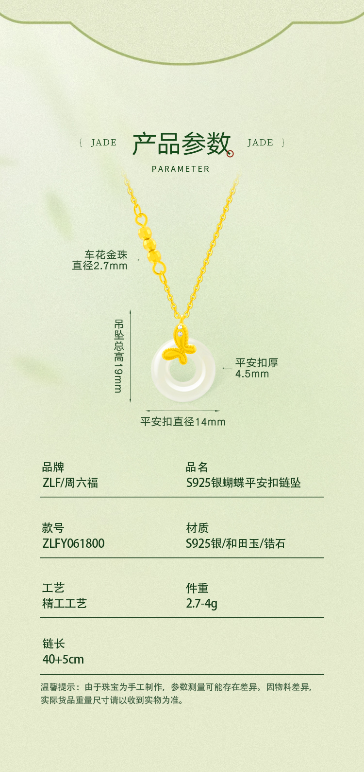 商品名称:周六福S925银蝴蝶平安扣项链ZLFY061800