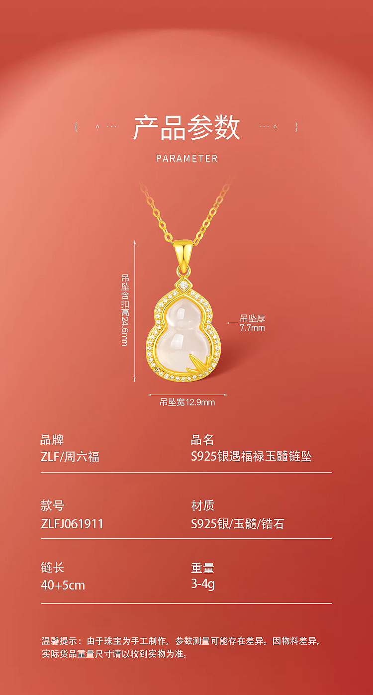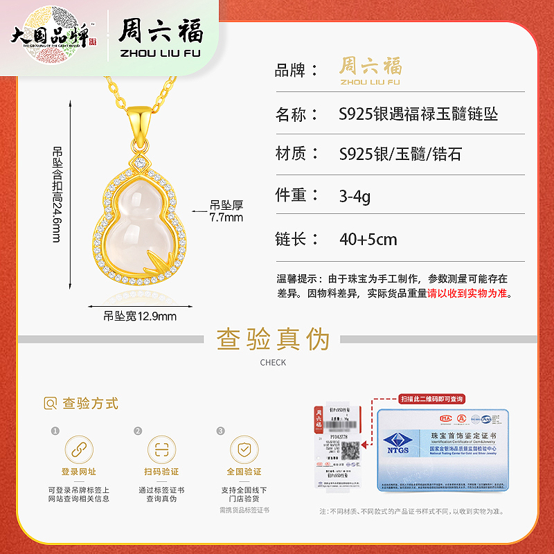 商品名称:周六福S925银遇福禄玉髓链坠ZLFJ061911