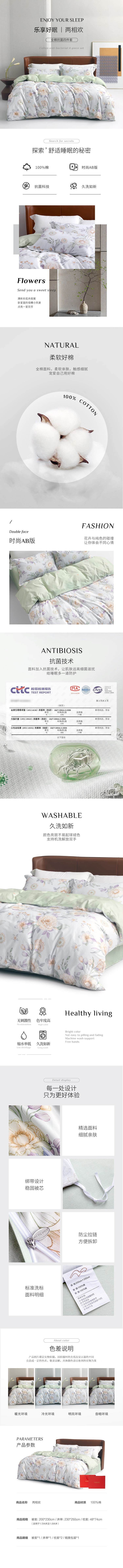 水星家纺两相欢全棉抗菌床品四件套200*230cm