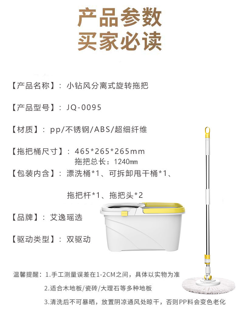 商品名称:艾逸瑶选小钻风分离式旋转拖把套装JQ-0095