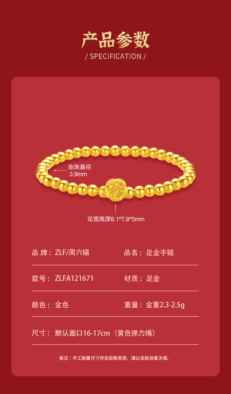 商品名称:周六福足金繁花似锦手串ZLFA121671