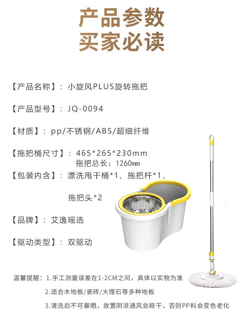 商品名称:艾逸瑶选小旋风PLUS旋转拖把套装JQ-0094