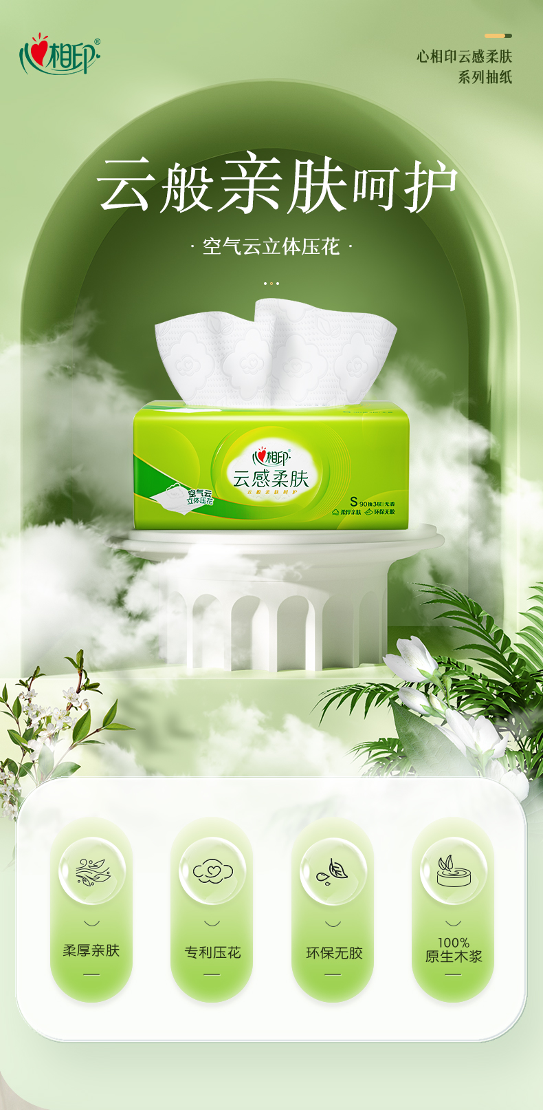 心相印云感三层塑装面巾抽纸整箱90抽*24包DT17090