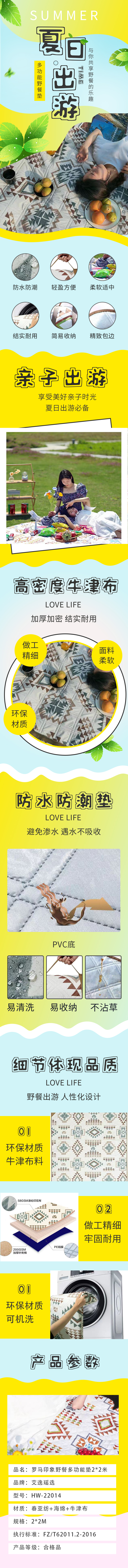 商品名称:艾逸瑶选罗马印象野餐多功能垫200*200cm HW-22014