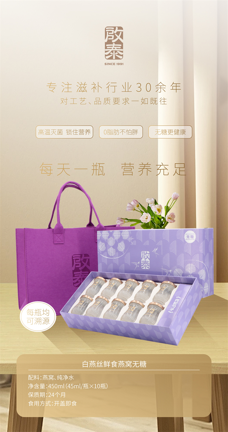商品名称:启泰无糖白燕丝鲜食燕窝礼盒450ml