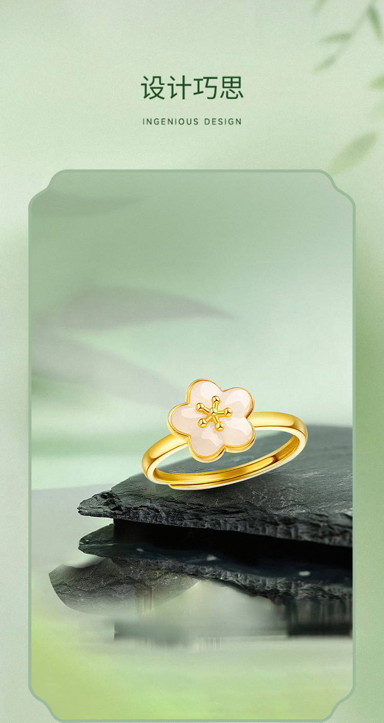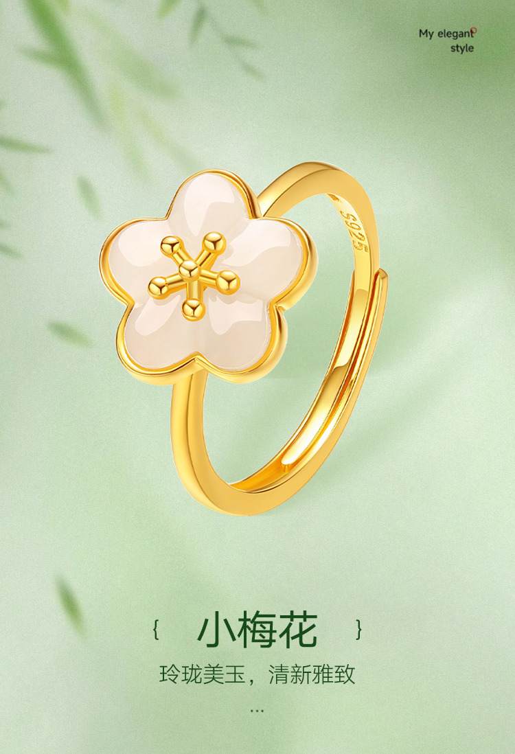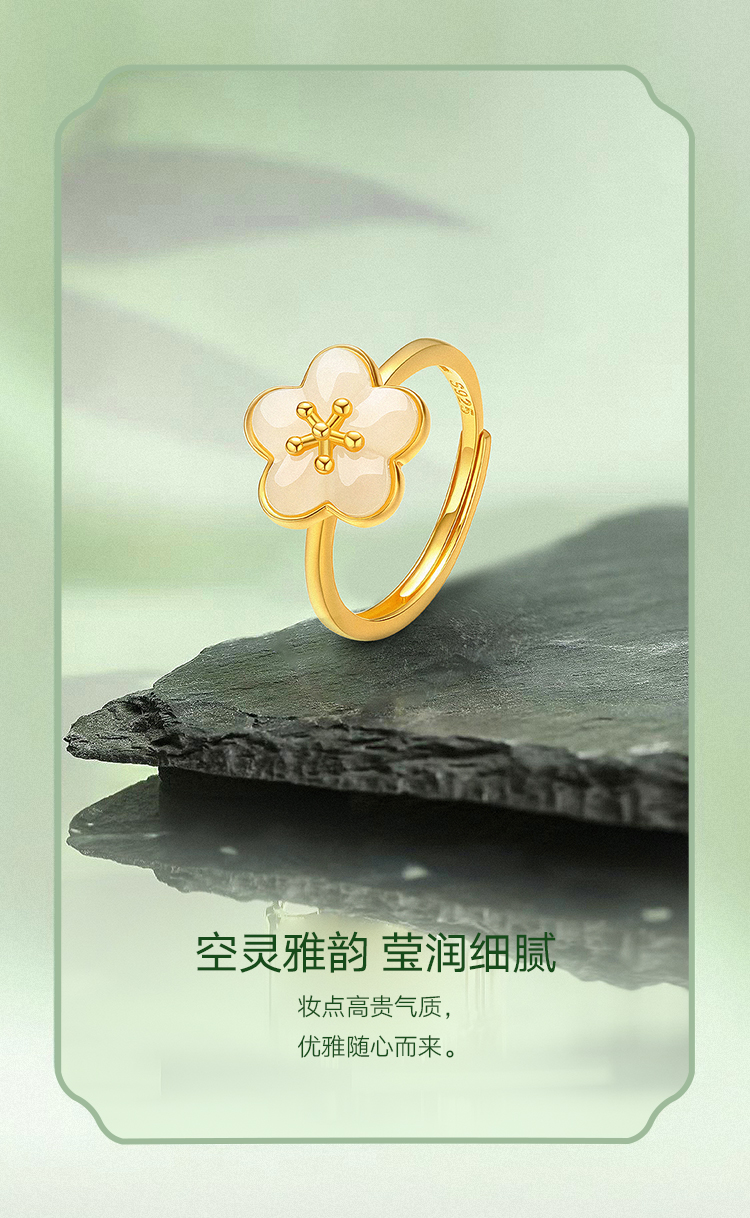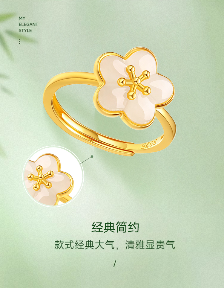 周六福S925银粉梅白玉戒指ZLFY011654
