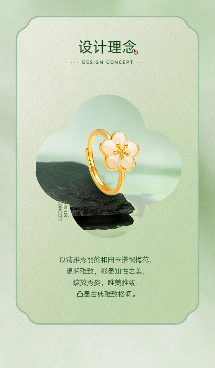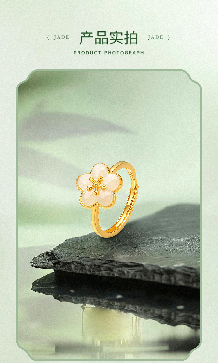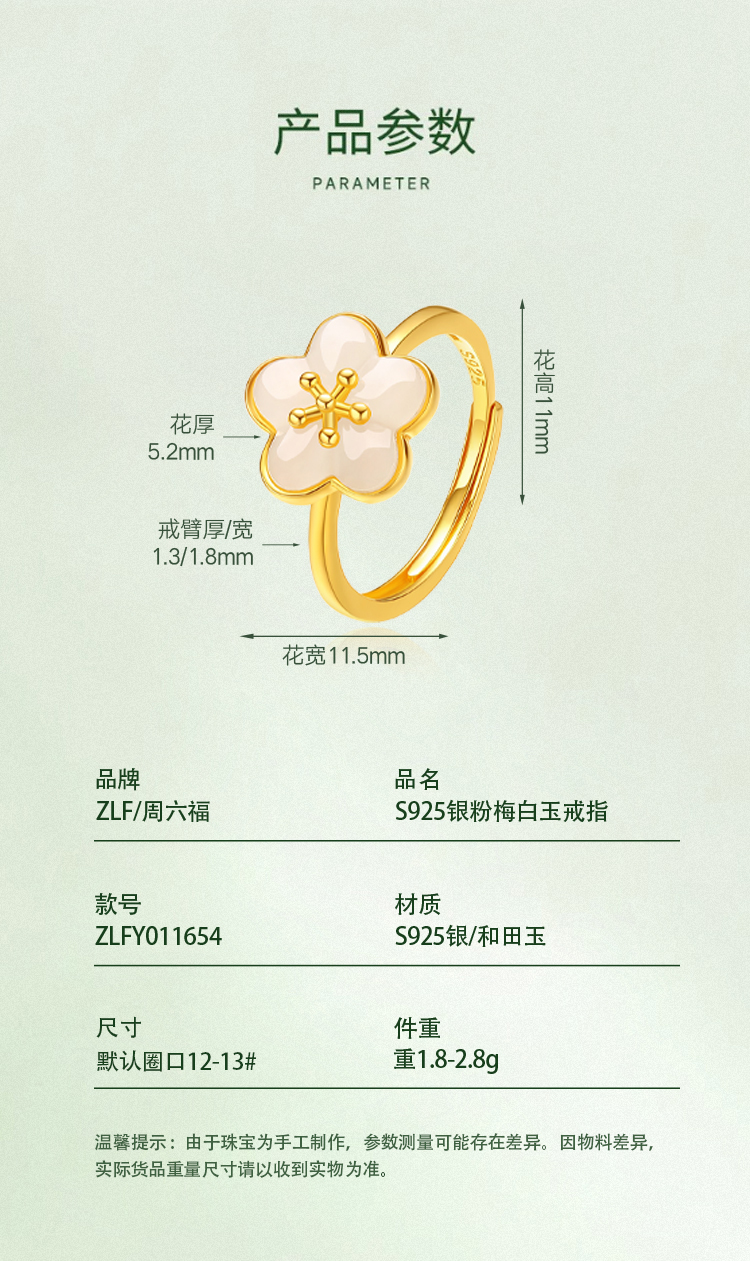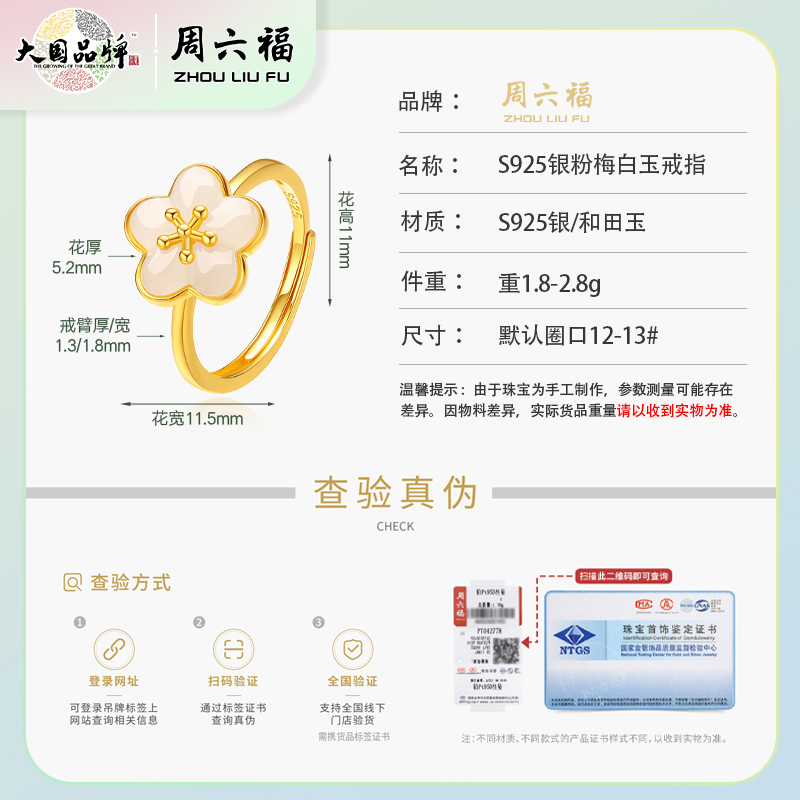 商品名称:周六福S925银粉梅白玉戒指ZLFY011654