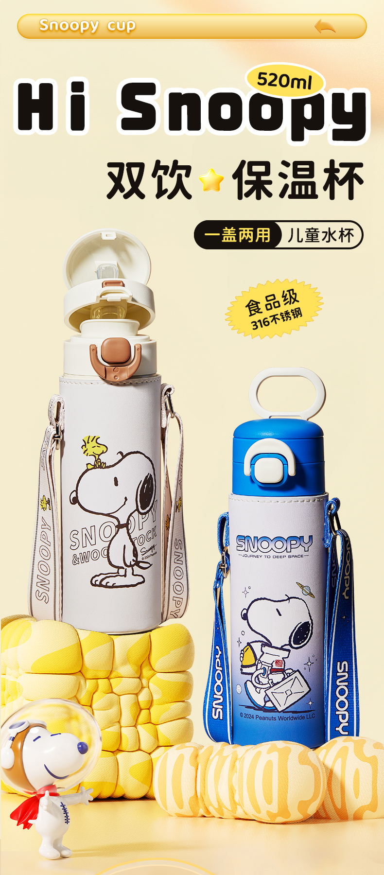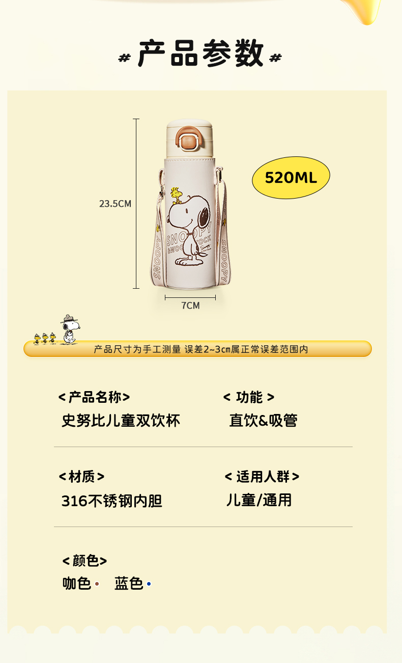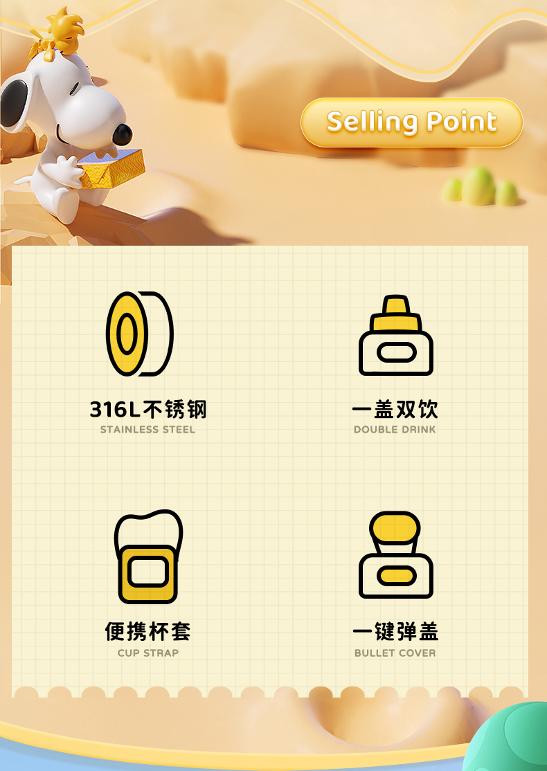 商品名称:SNOOPY/史努比520毫升双饮保温杯KR5308