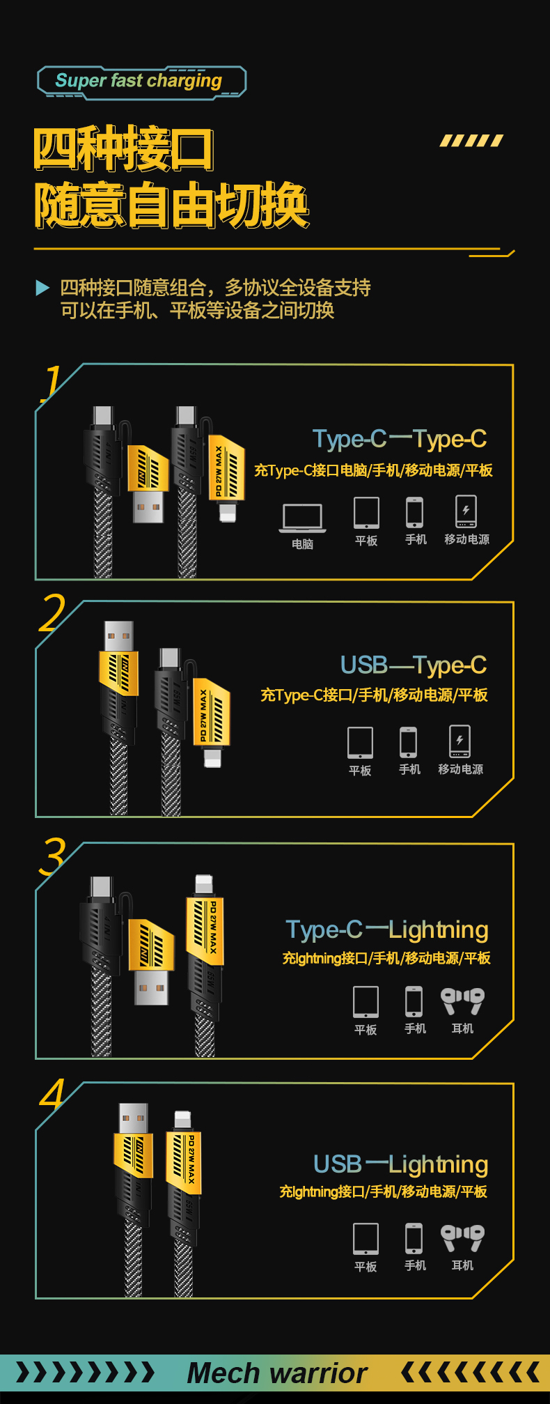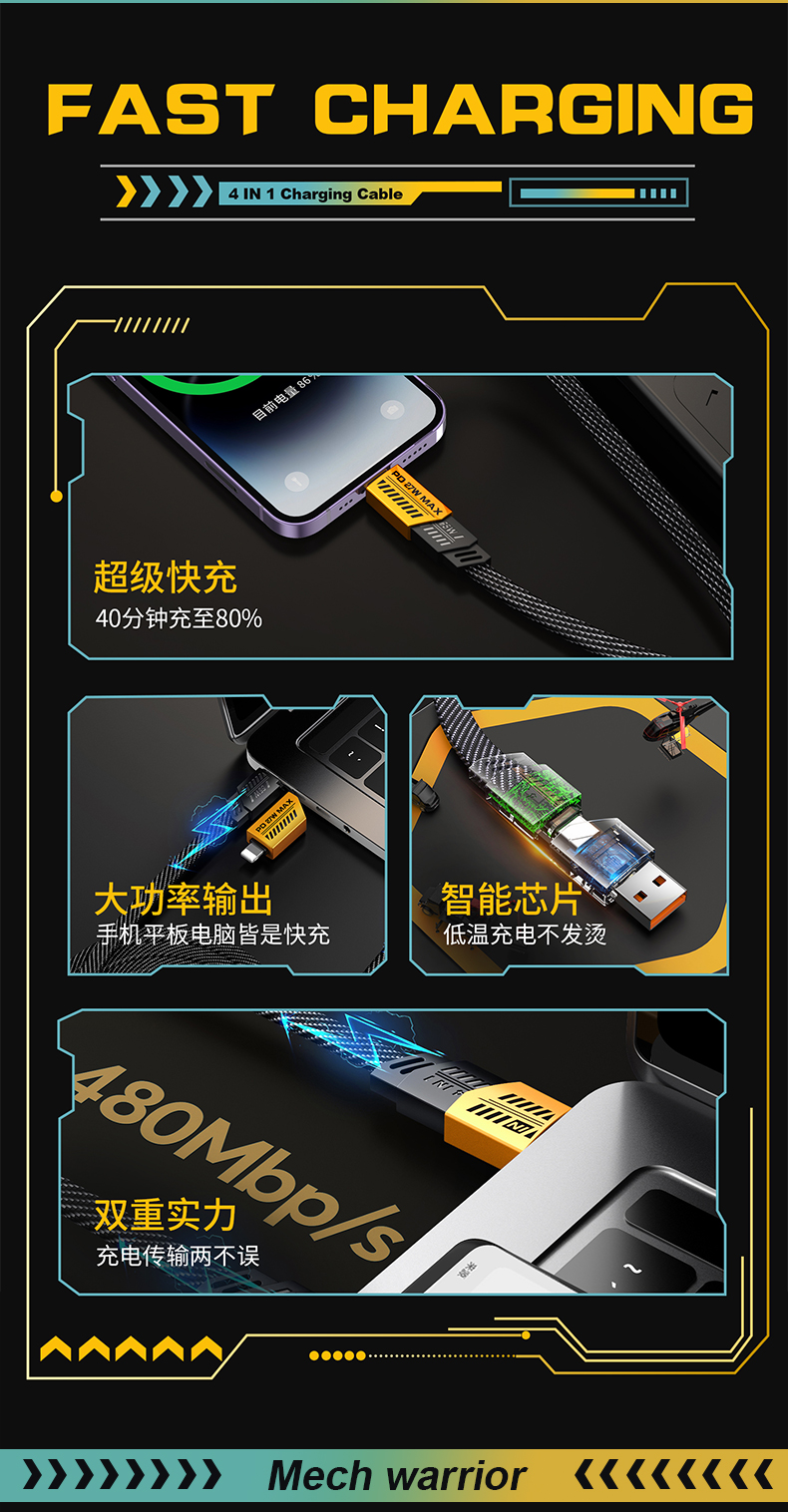 商品名称:艾逸瑶选震荡波四合一快充数据线SM-9045