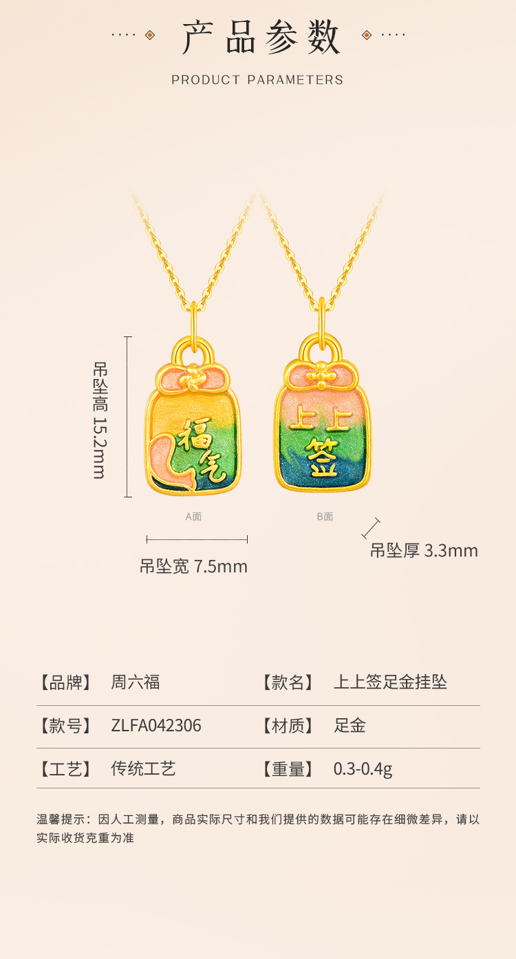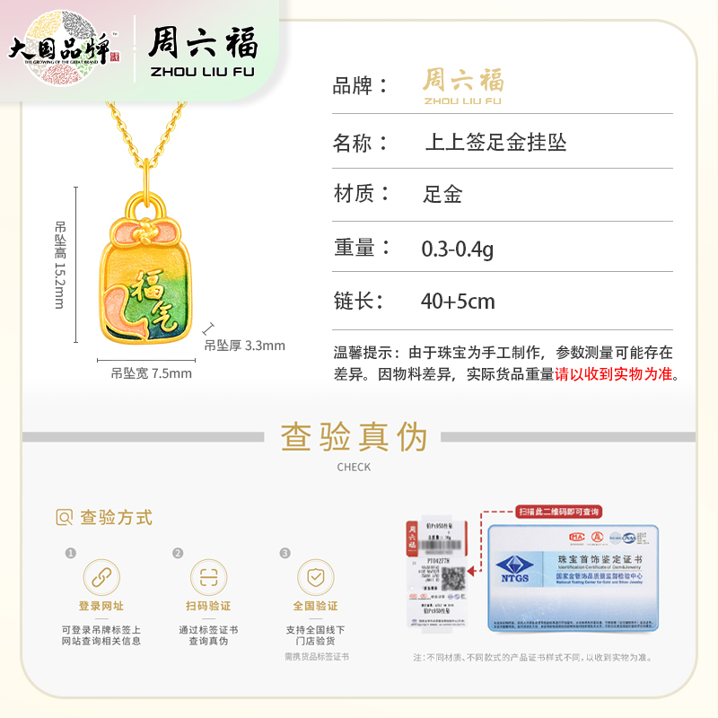 商品名称:周六福足金上上签挂坠ZLFA042306