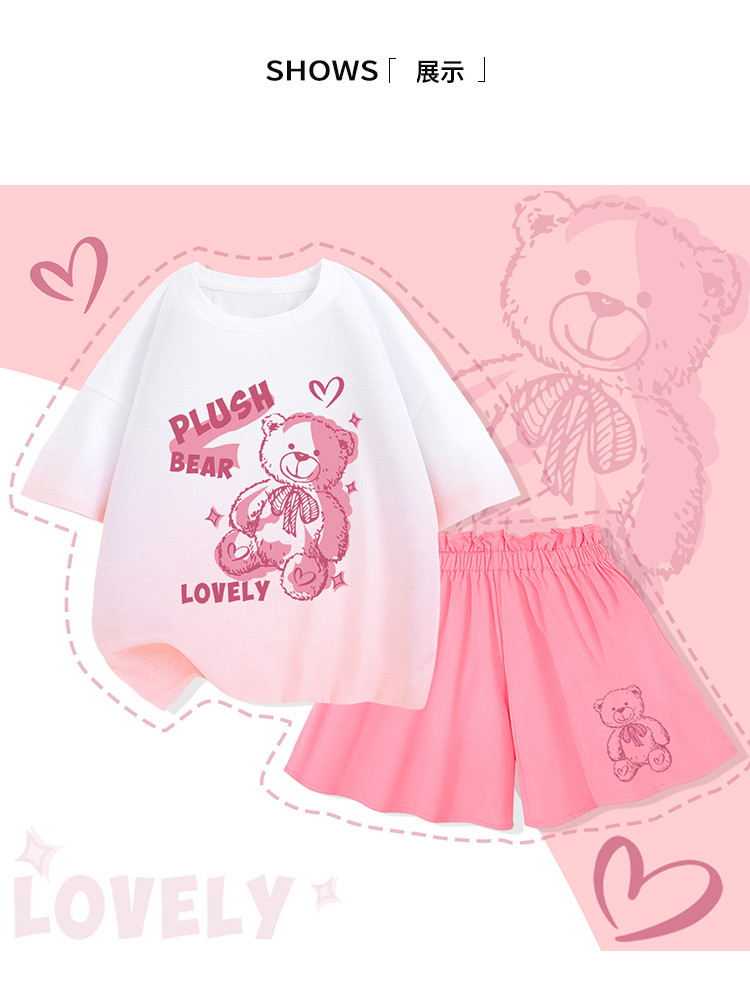 商品名称:女童套装2024春秋洋气渐变短袖亲肤透气短裙中大童两件套 122447