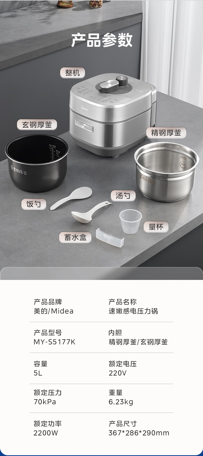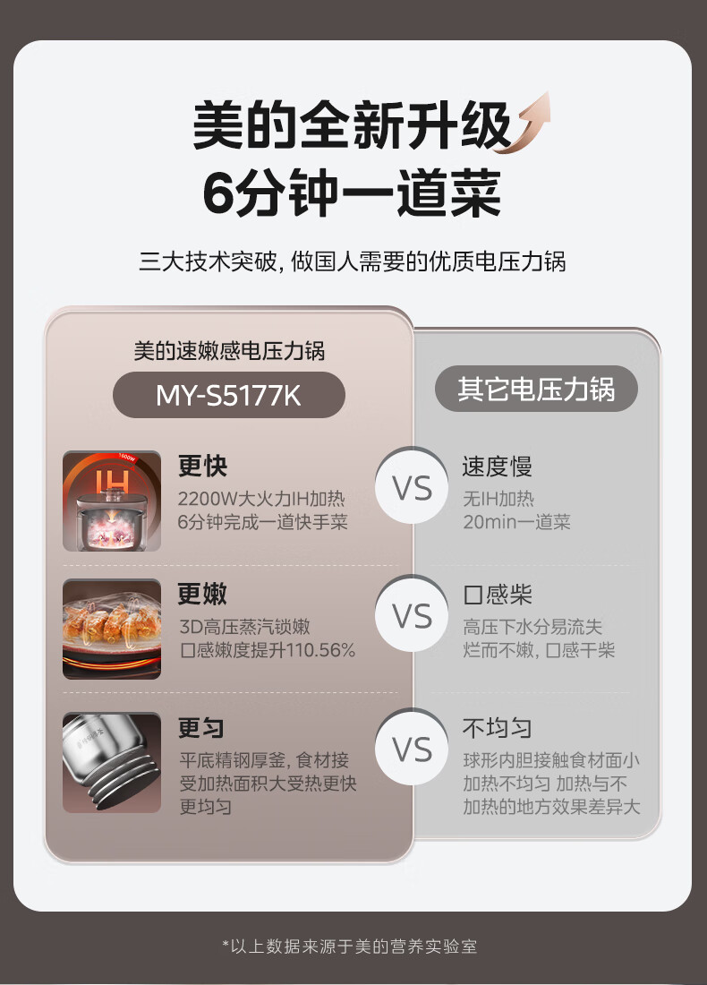 商品名称:Midea/美的5升速嫩感电压力锅MY-S5177K