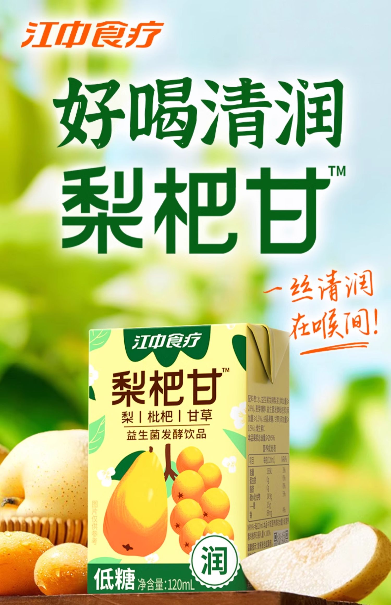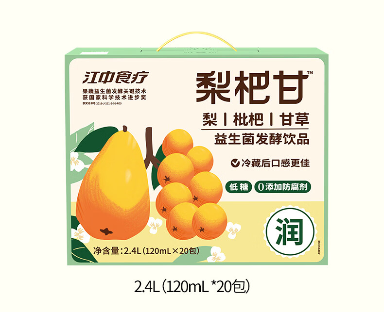 商品名称:【京东/德邦配送】江中食疗梨杷甘低糖益生菌发酵饮料整箱120ml*20盒