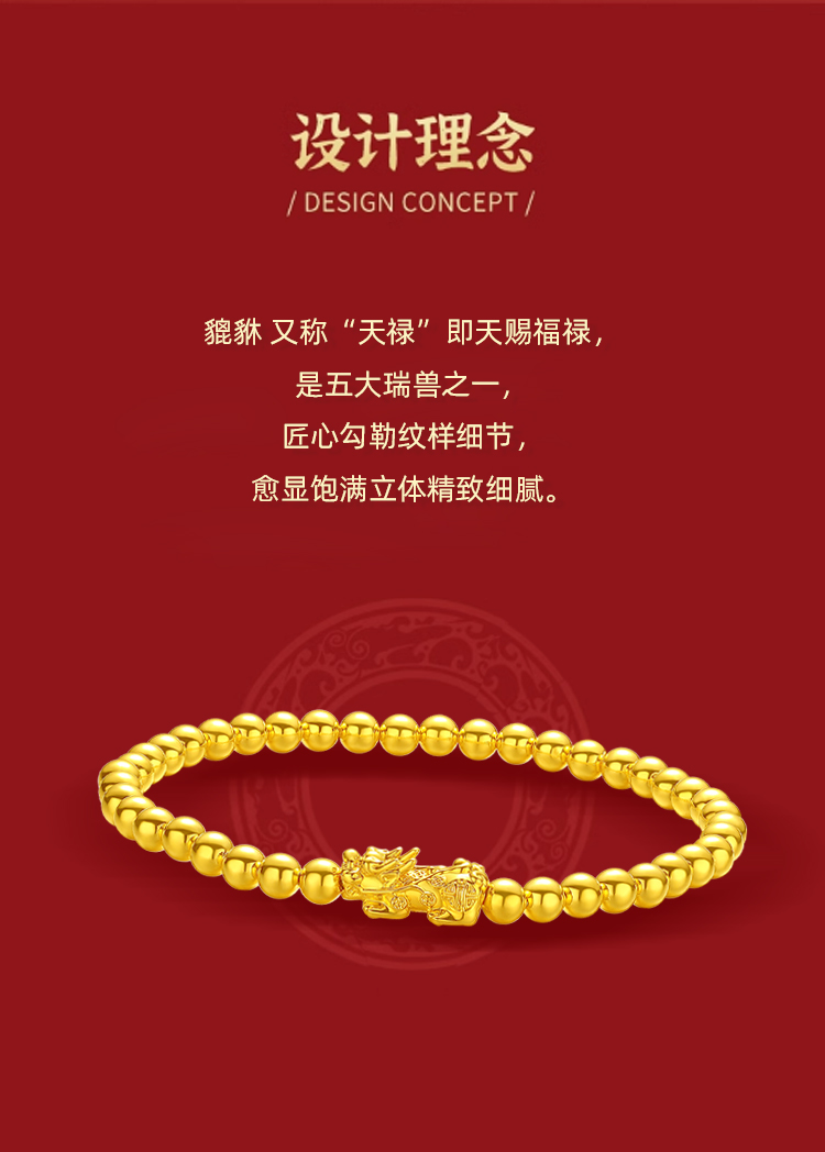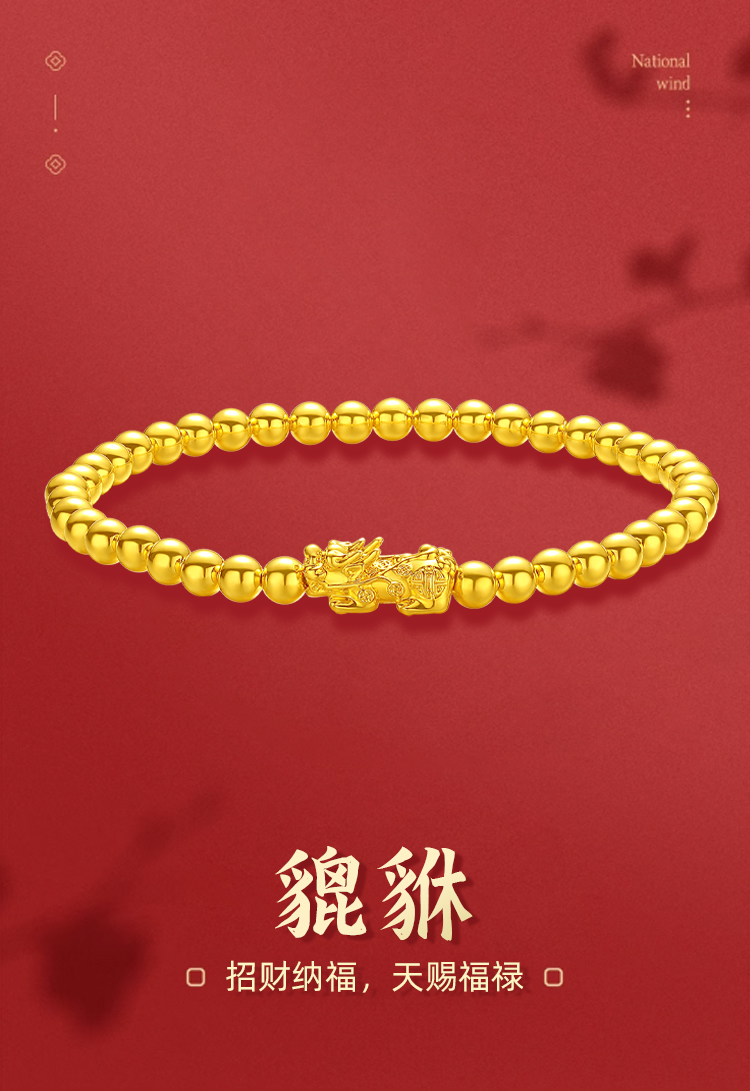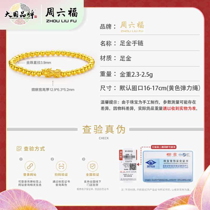 商品名称:周六福足金天禄貔貅手串ZLFA121672