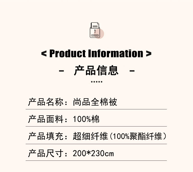 商品名称:GRACE/洁丽雅尚品全棉被200*230cm 2500g