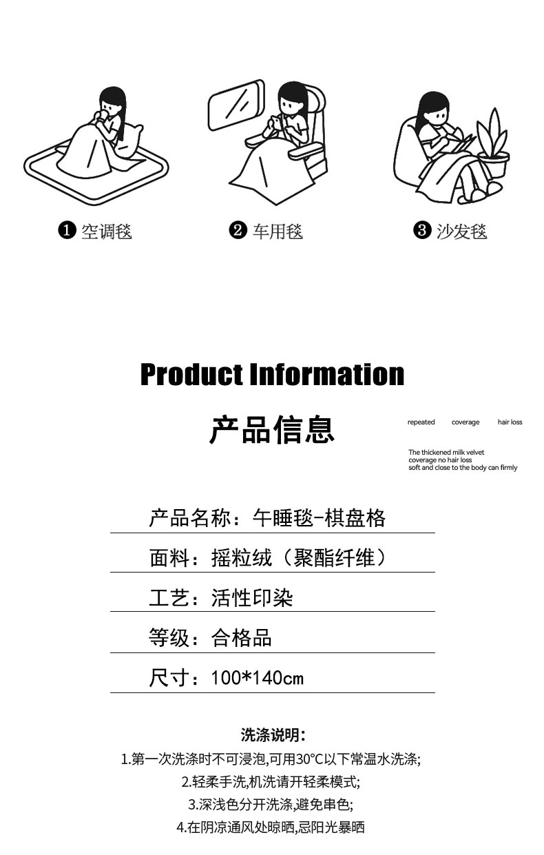 商品名称:GRACE/洁丽雅棋盘格午睡毯100*140cm 550g