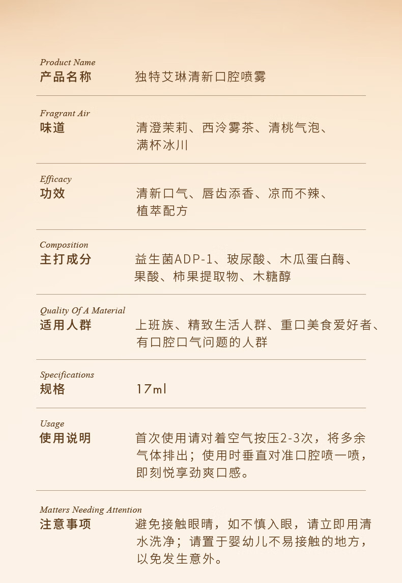 商品名称:Dear Irean/独特艾琳清新口腔喷雾17ml