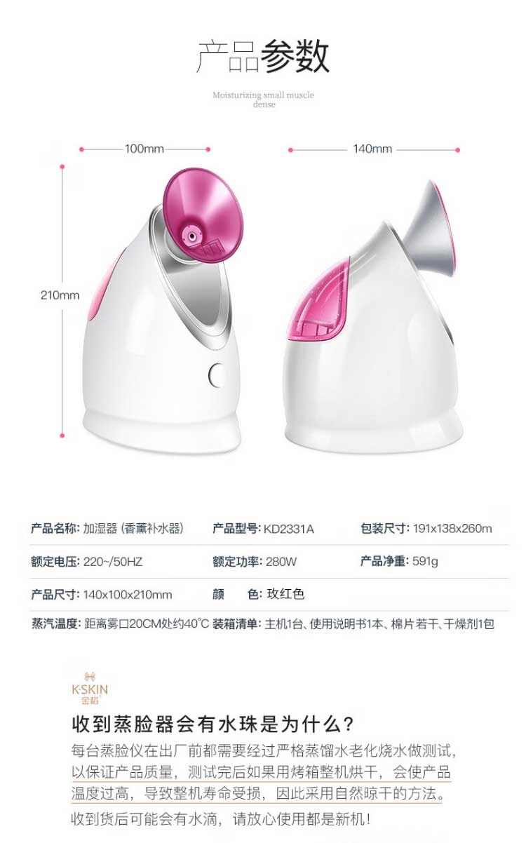 商品名称:K.SKIN/金稻离子蒸脸仪-枚红色KD2331A