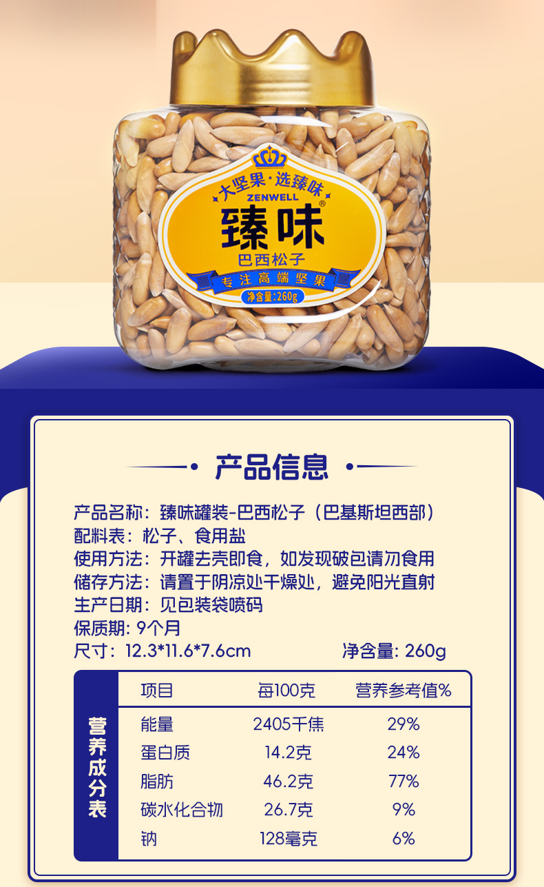 商品名称:臻味巴西松子260g