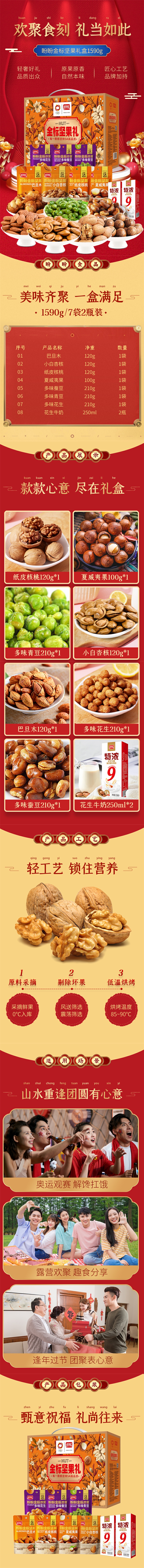 商品名称:盼盼优享款金标坚果零食礼盒1090g+500ml