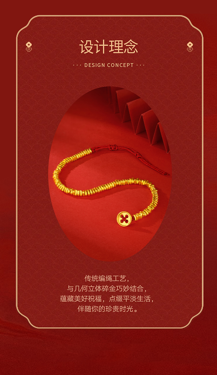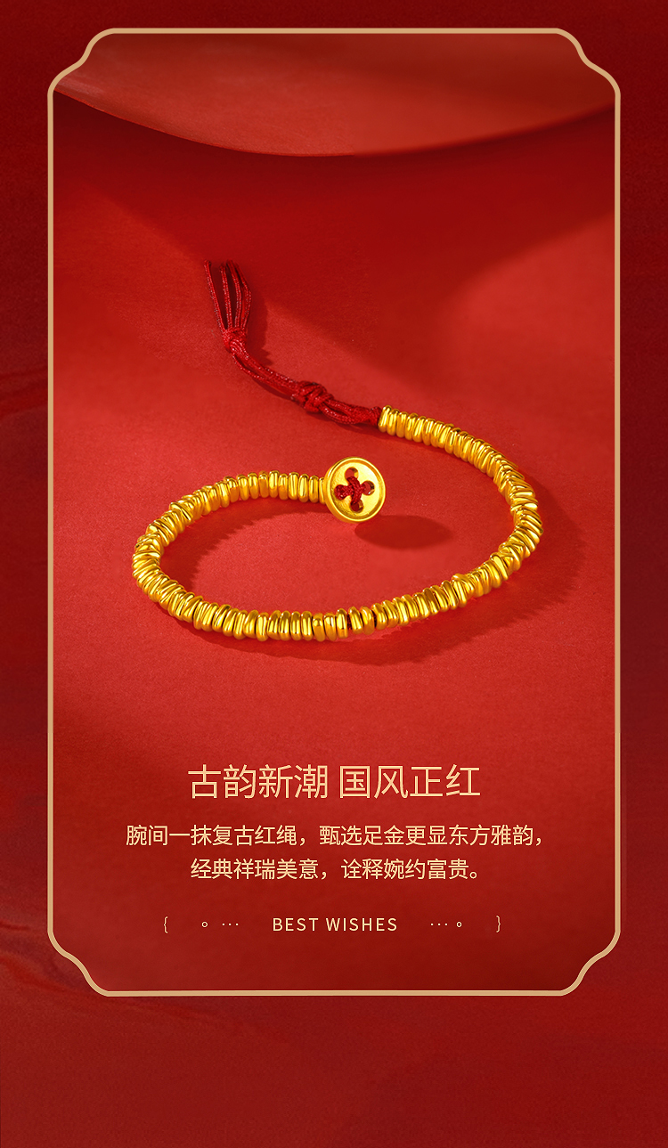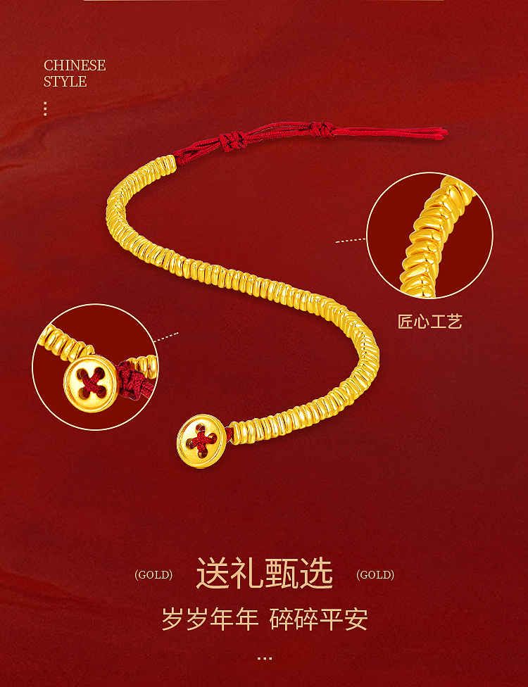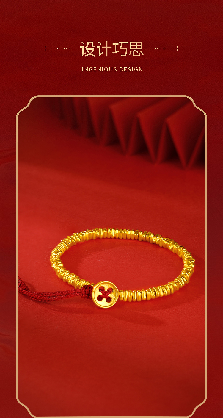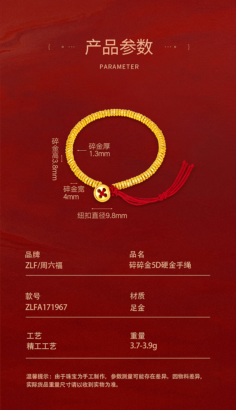 周六福5D硬金碎碎金手绳ZLFA171967