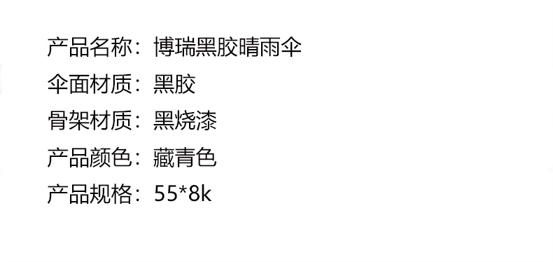 商品名称:艾逸瑶选博瑞黑胶晴雨伞YS-1831