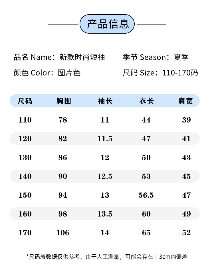 | 尺码 | 衣长(cm) | 肩宽(cm) | 身高(cm) | 袖长(cm) | 适合年龄 | 胸围(cm) | 号型 |