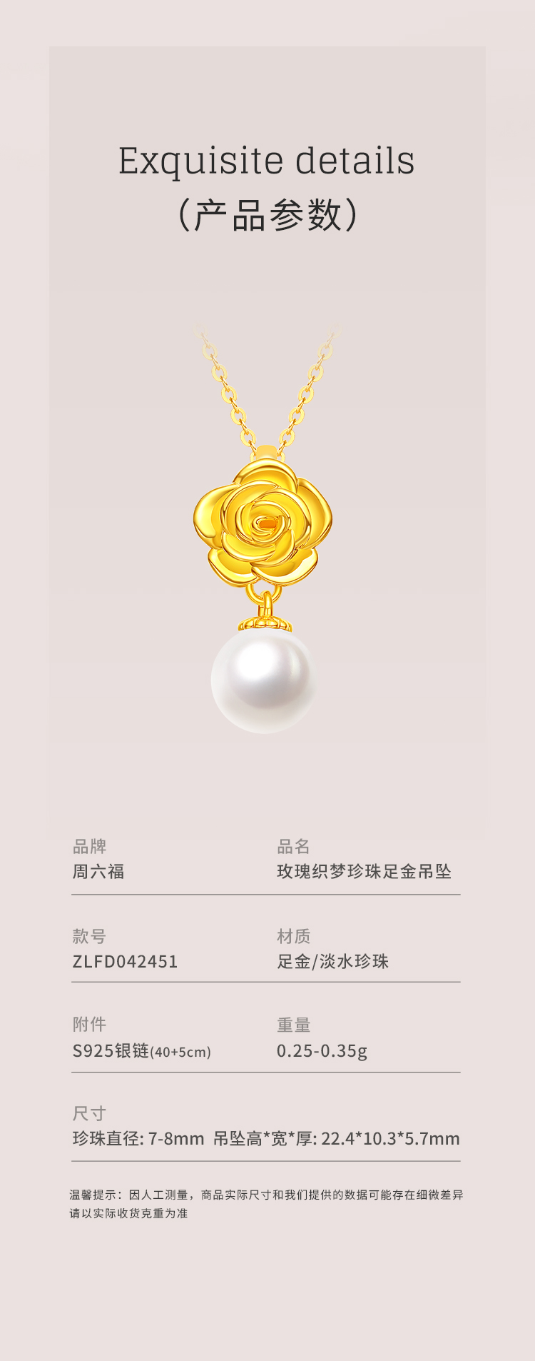 商品名称:周六福足金玫瑰织梦珍珠吊坠ZLFD042451