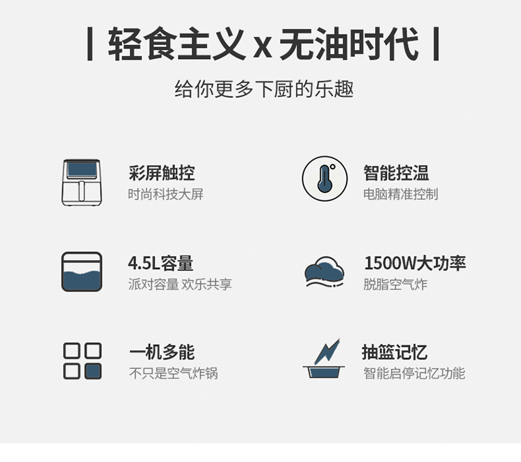 商品名称:Liven/利仁4.5升电脑版空气炸锅-蓝色KZ-D4521