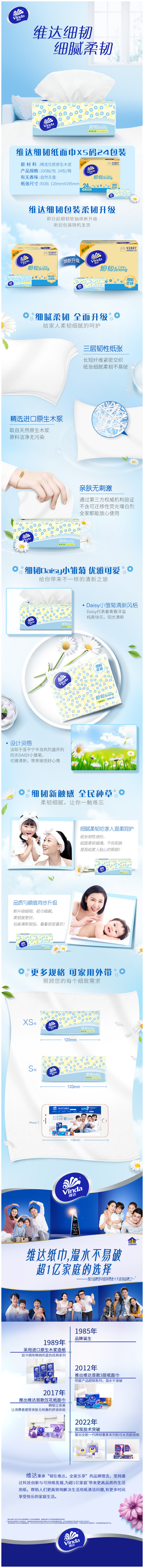 商品名称:Vinda/维达细韧软抽3层面巾抽纸整箱XS码100抽*24包V2607