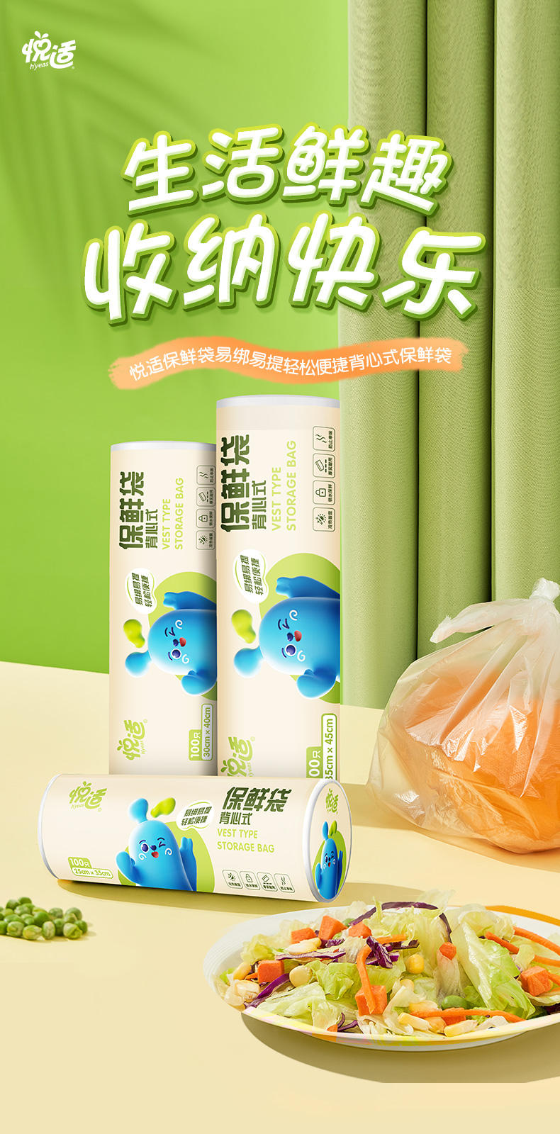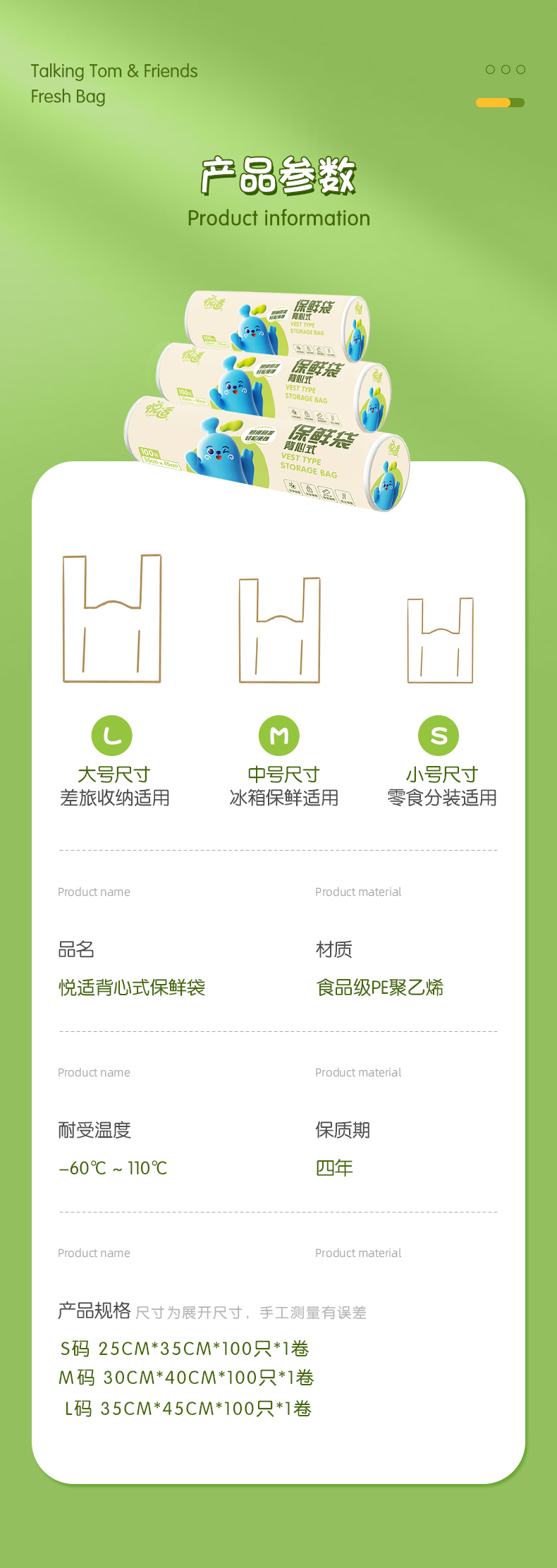 商品名称:心相印悦适背心式保鲜袋大中小组合装100只*3卷