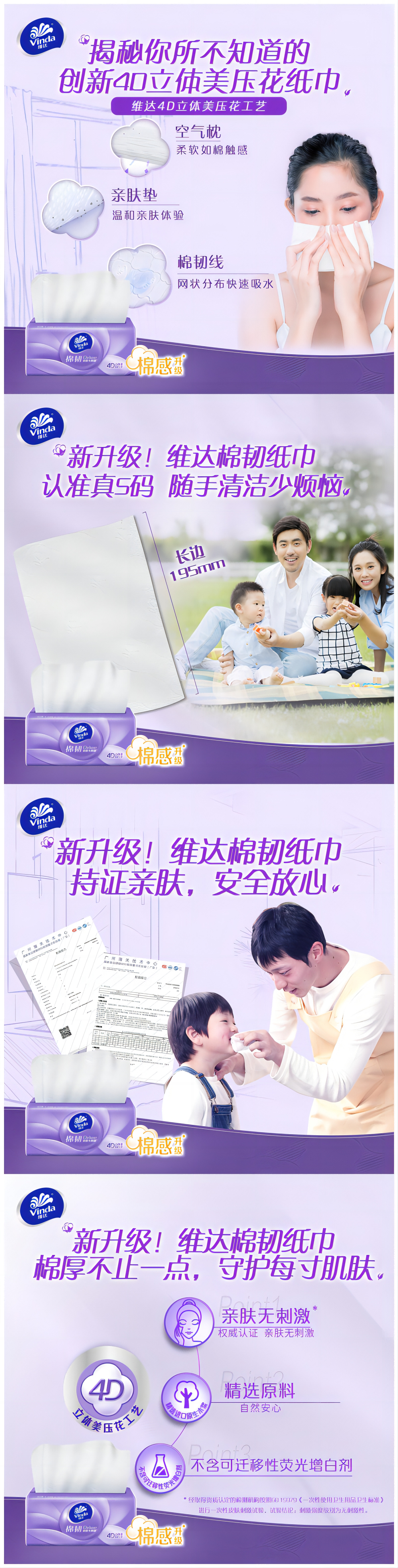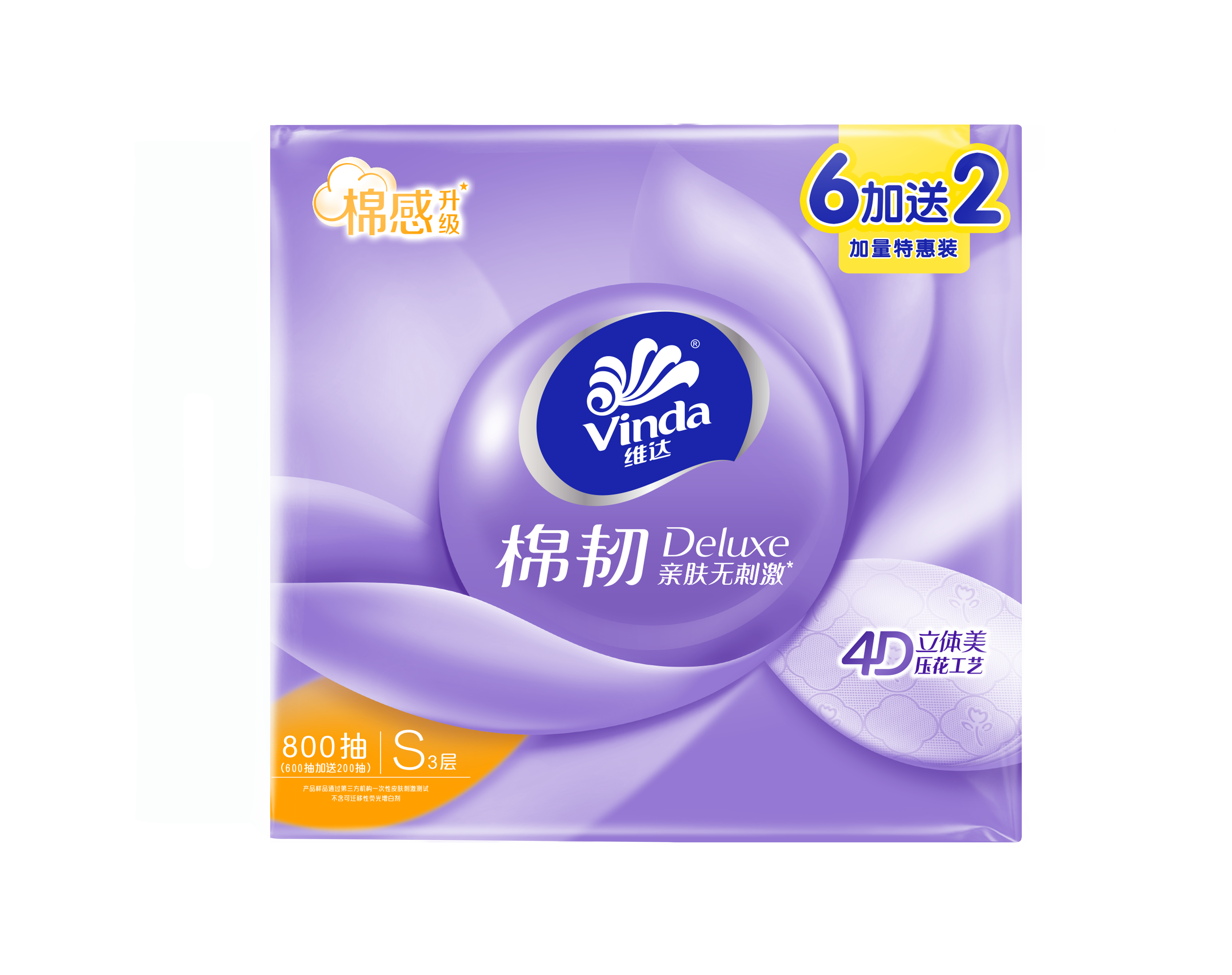 商品名称:Vinda/维达棉韧抽取式纸巾100抽*8包*1提V2833