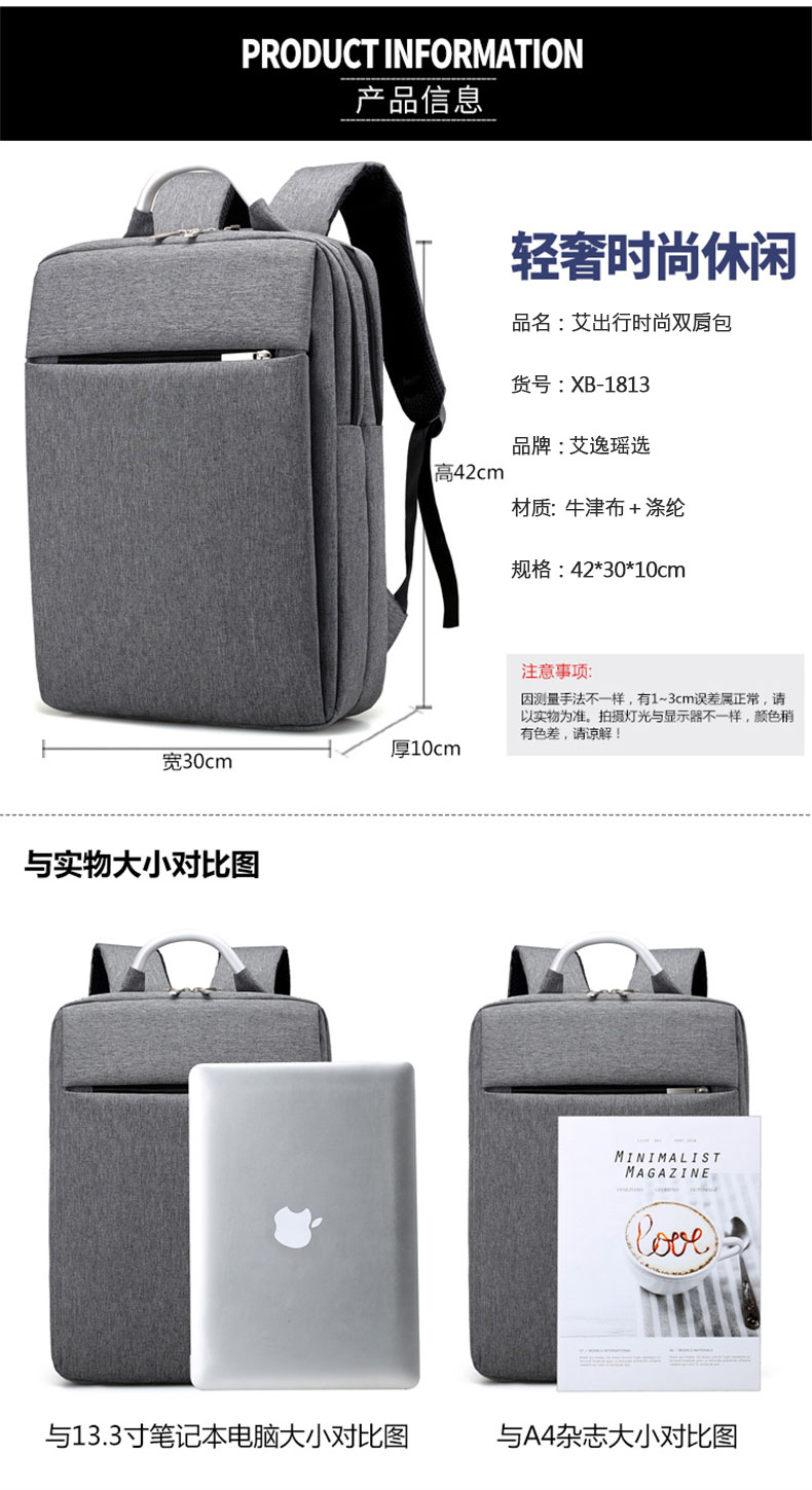 商品名称:艾逸瑶选艾出行时尚双肩包XB-1813