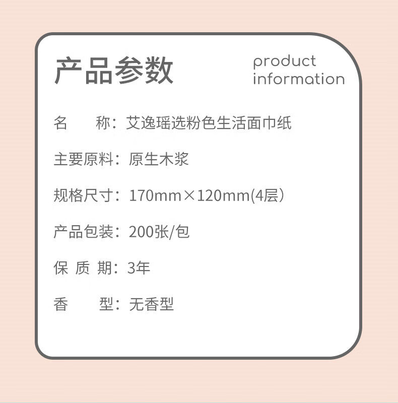 商品名称:艾逸瑶选粉色生活四层面巾抽纸200张*10包AYYX008-10