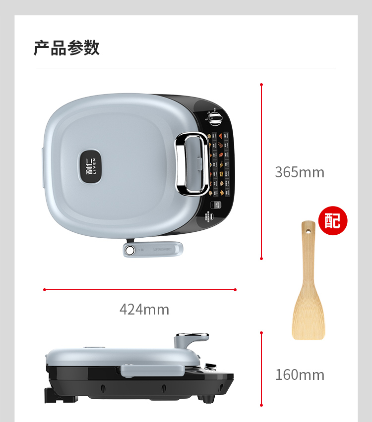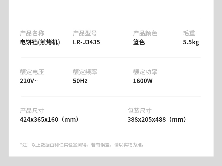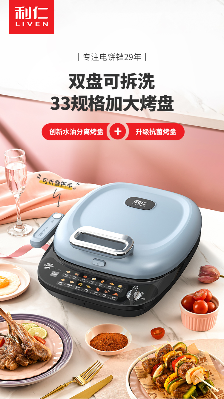 商品名称:Liven/利仁33cm上下可拆盘电饼铛-蓝色LR-J3435