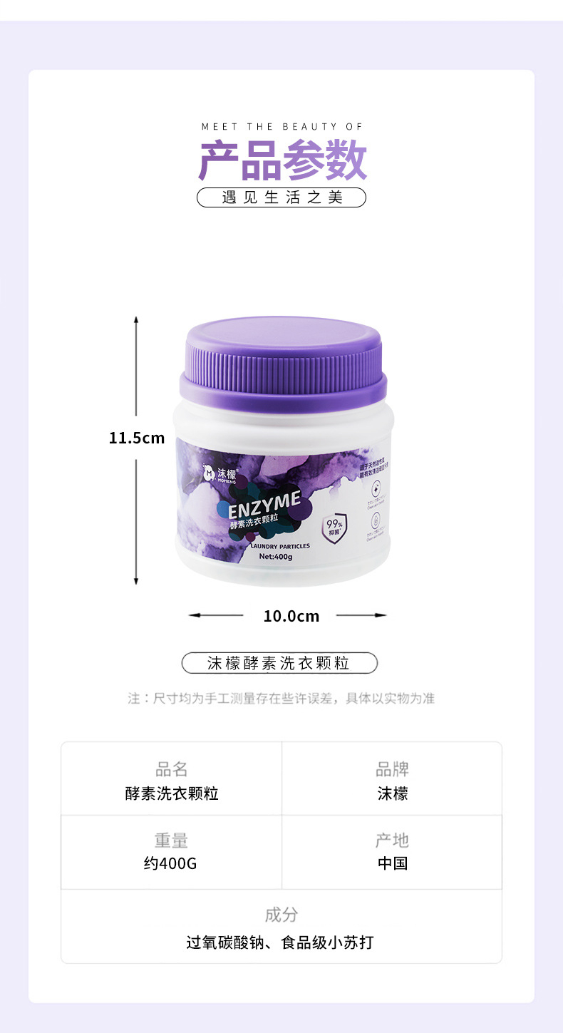 商品名称:沫檬酵素洗衣颗粒约400g*4罐