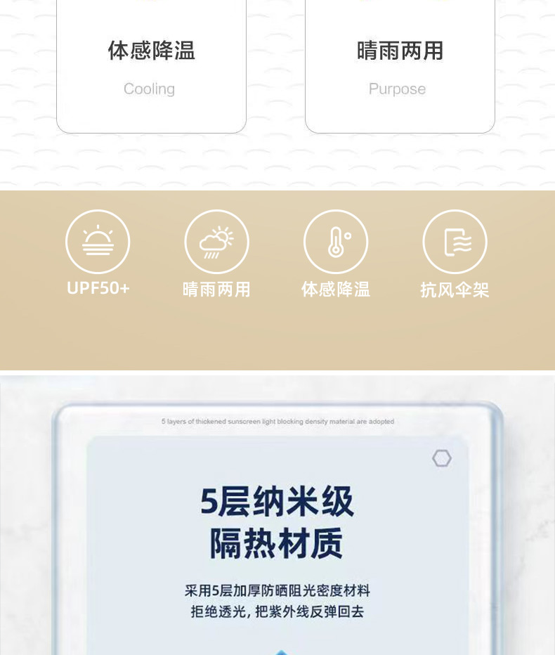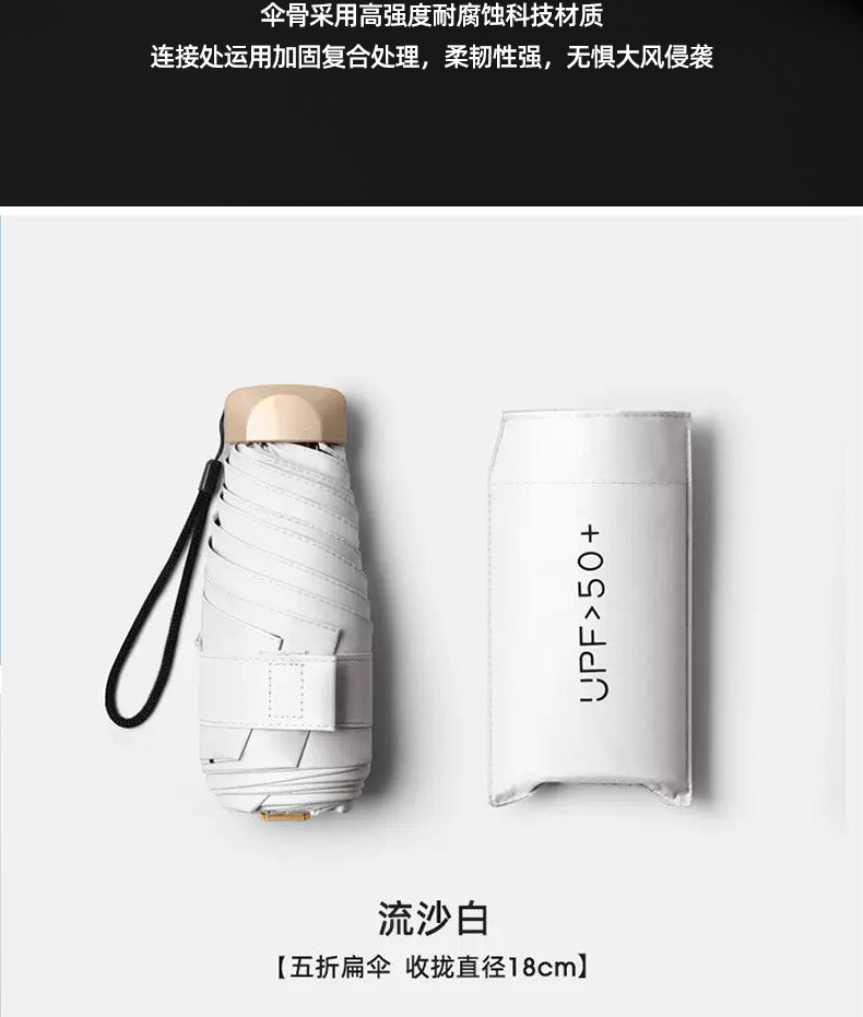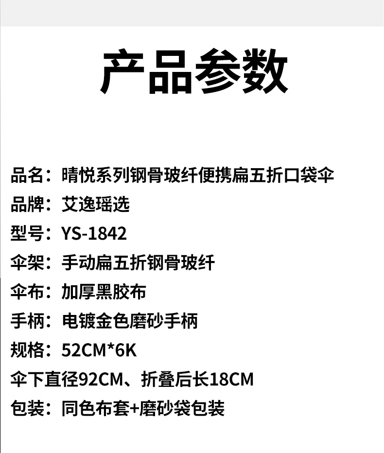 商品名称:艾逸瑶选晴悦系列钢骨玻纤便携扁五折口袋伞YS-1842