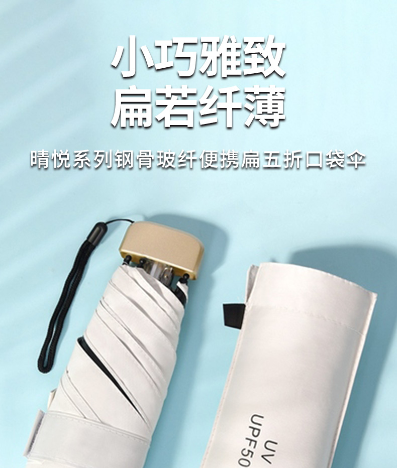 艾逸瑶选晴悦系列钢骨玻纤便携扁五折口袋伞YS-1842