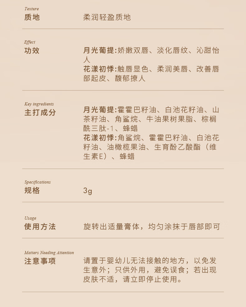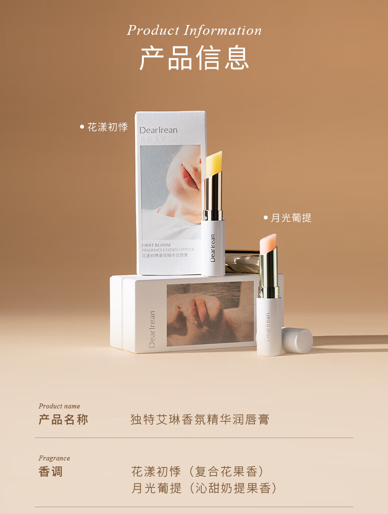 商品名称:Dear Irean/独特艾琳香氛精华润唇膏3g