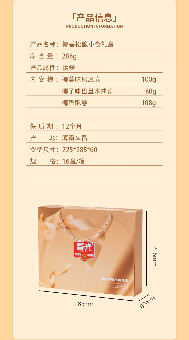 商品名称:【京东/德邦配送】春光椰香松脆小食糕点礼盒288g