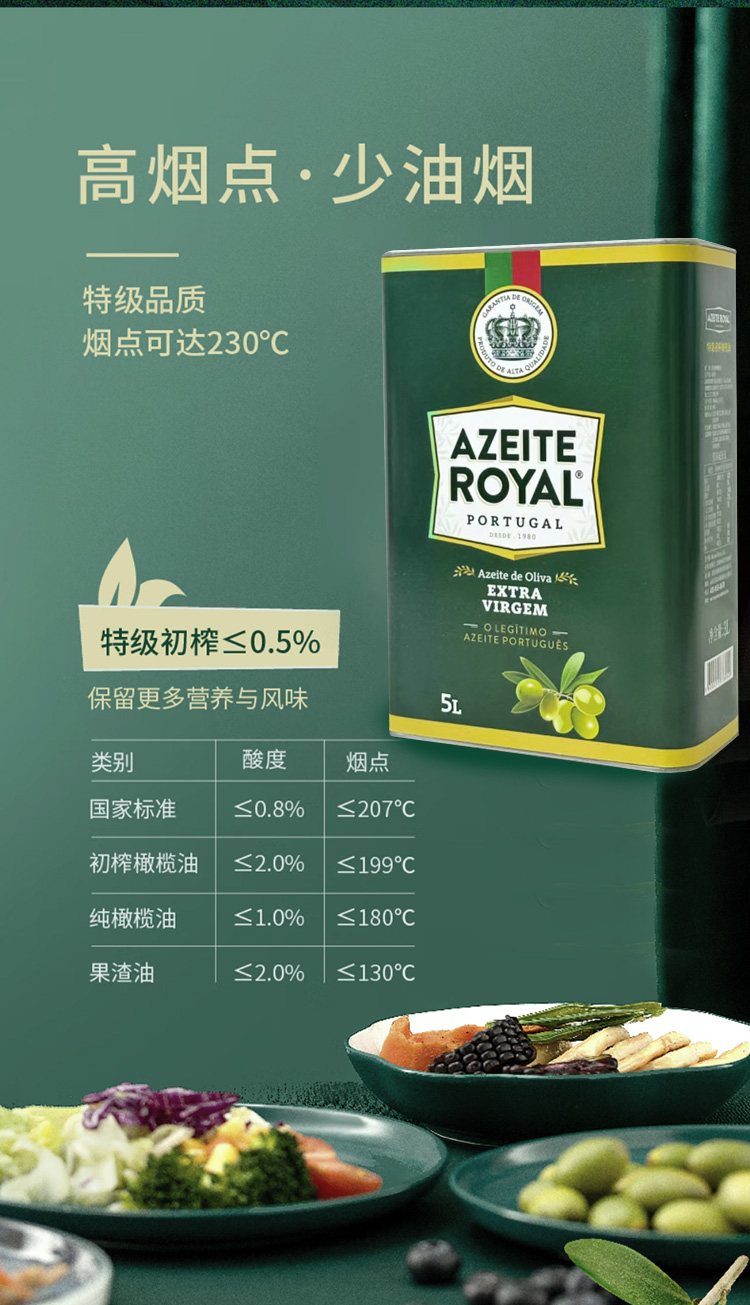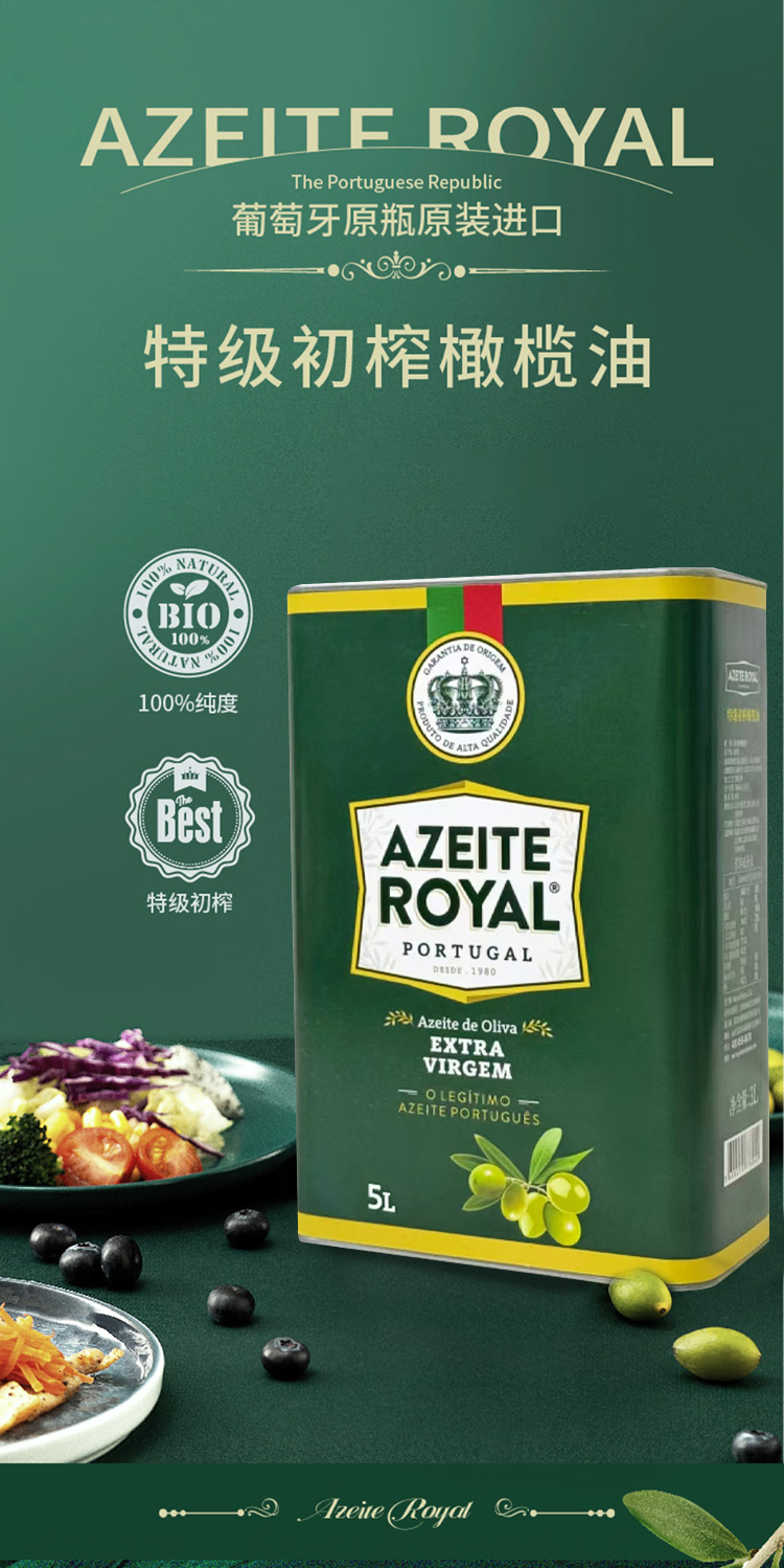 商品名称:[京东/德邦配送】AZEITE ROYAL/皇冠特级初榨橄榄油5L