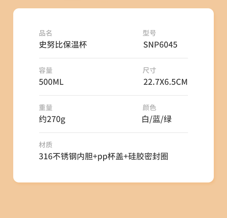 商品名称:SNOOPY/史努比500毫升元气保温杯