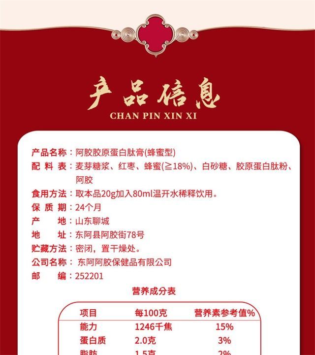 商品名称:【京东/德邦配送】东阿阿胶胶原蛋白肽膏礼盒-蜂蜜型1100g