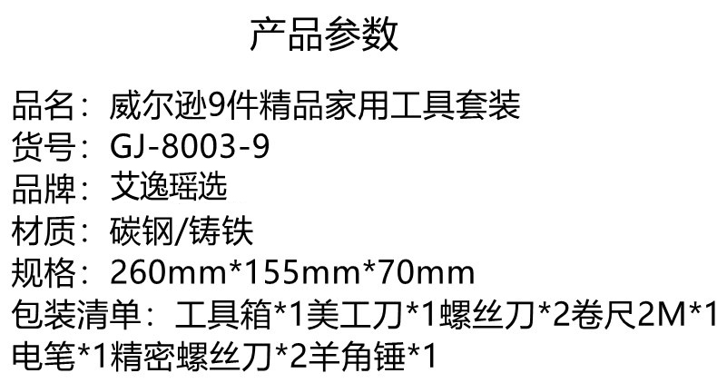 商品名称:艾逸瑶选威尔逊精品家用工具9件套GJ-8003-9