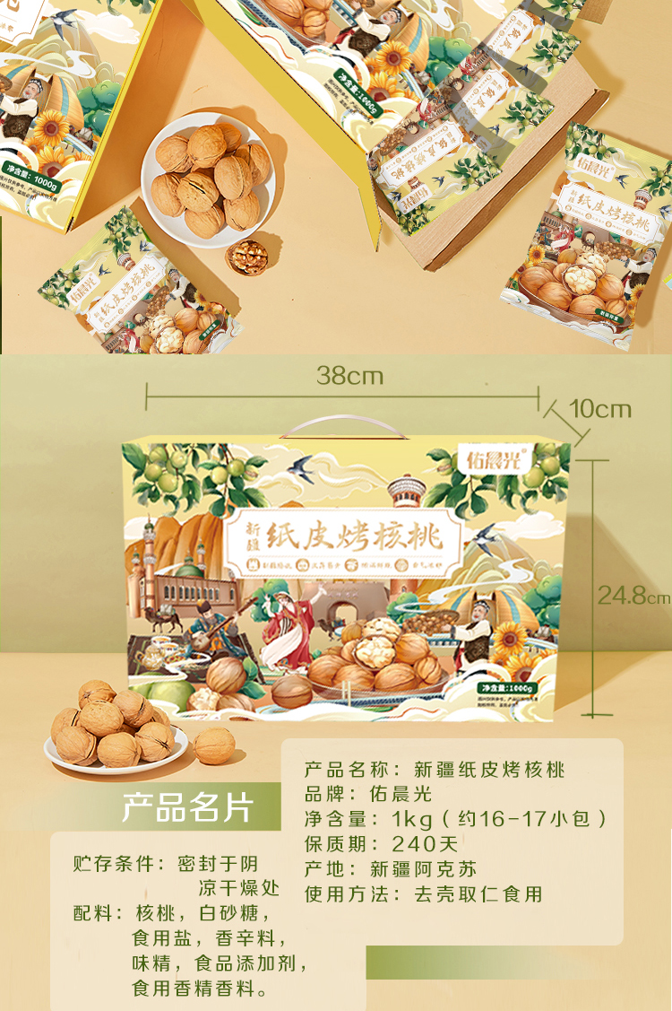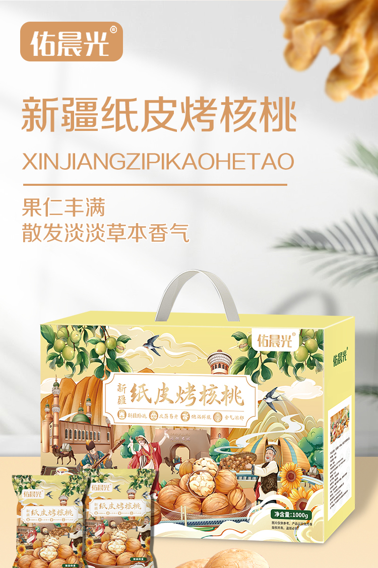 商品名称:佑晨光纸皮烤核桃礼盒1000g