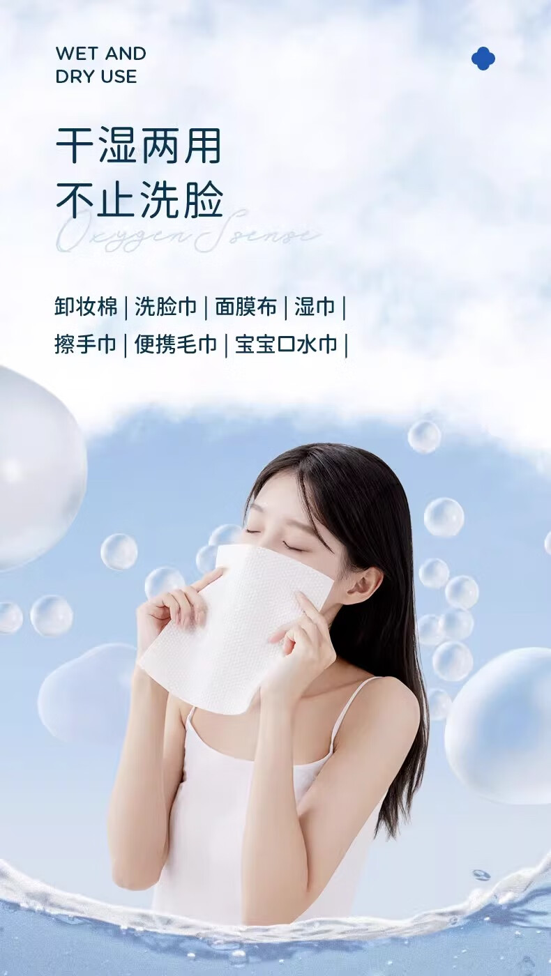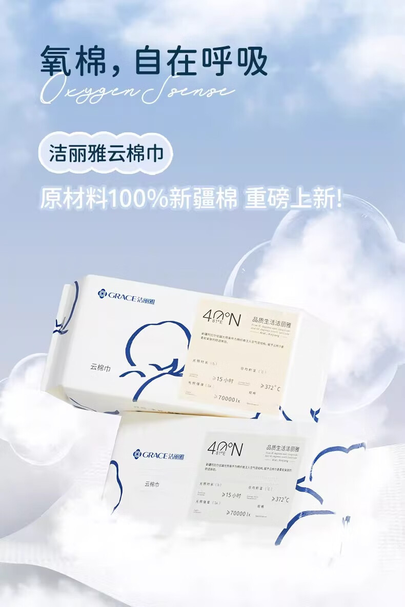 商品名称:GRACE/洁丽雅氧气云棉洗脸巾-轻柔款90片*3包MRJ643-3